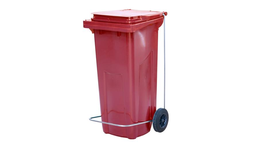 Бак для мусора 120 л. 55*45*96 см. красный, с крышкой на колёсах с педалью /1/