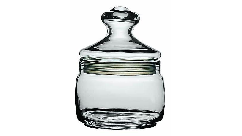 Банка для сыпучих продуктов выполнена из высококачественного стекла.