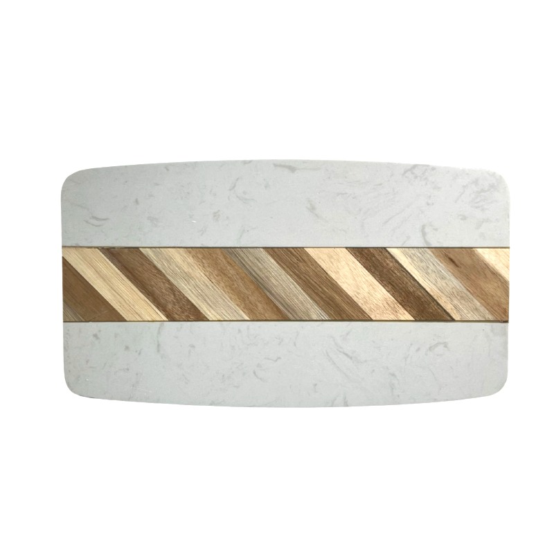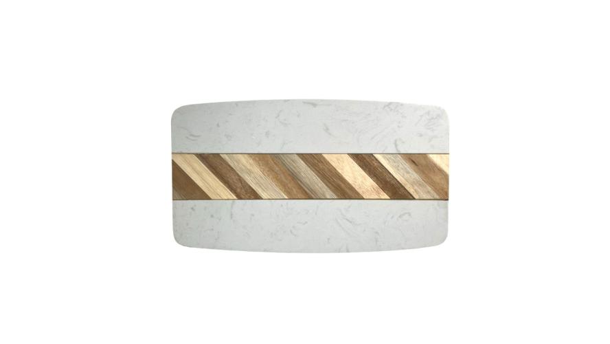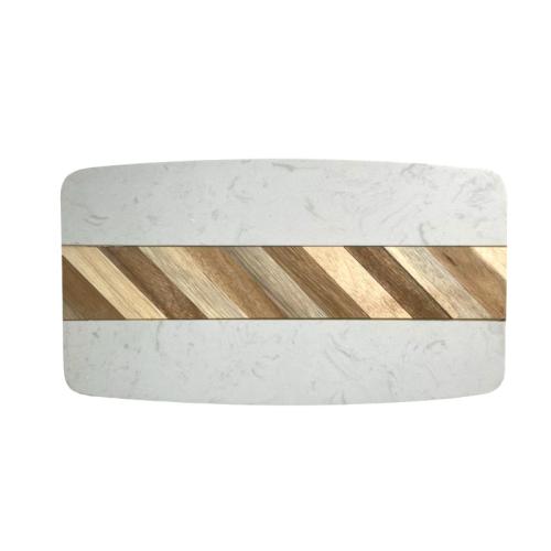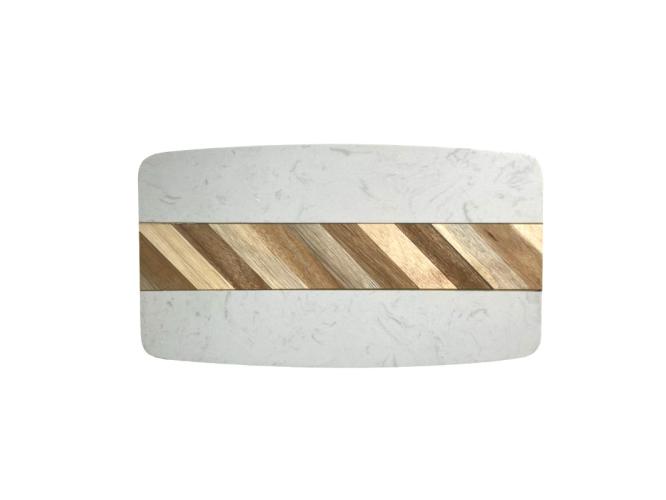 Блюдо для подачи прямоуг. 32*18 см. белое, мрамор, с дерев. вставкой MGprof /1/6/ АКЦИЯ
