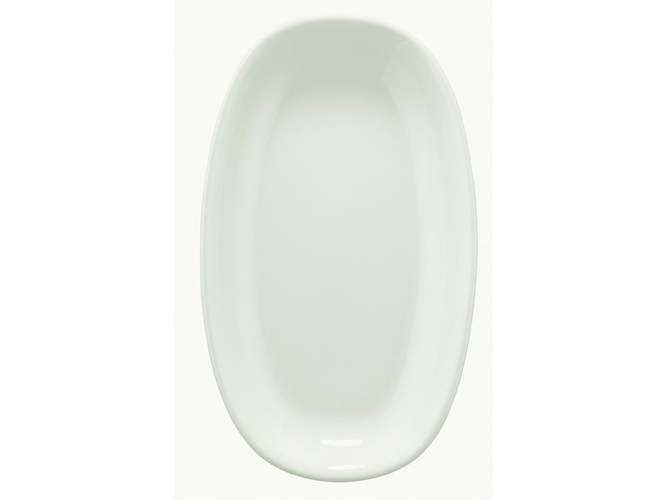 Блюдо белого цвета со сливочным оттенком.