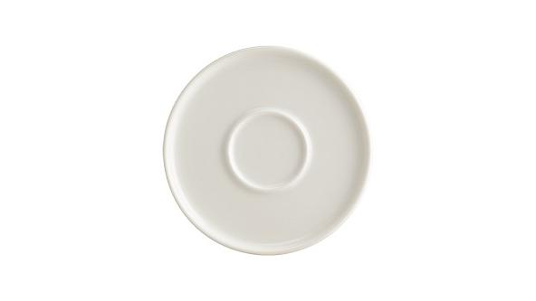 Блюдце белого цвета со сливочным оттенком.