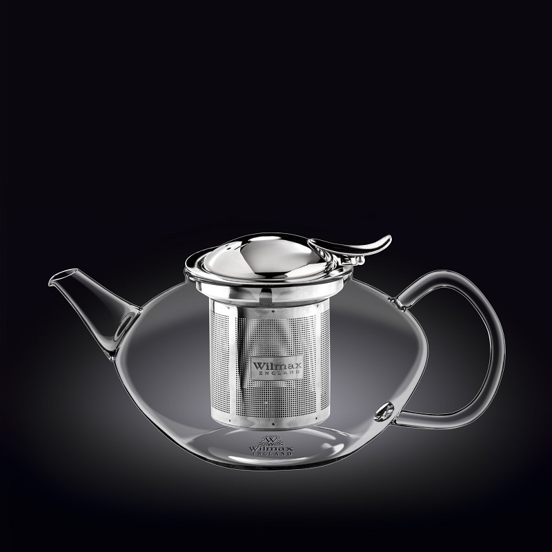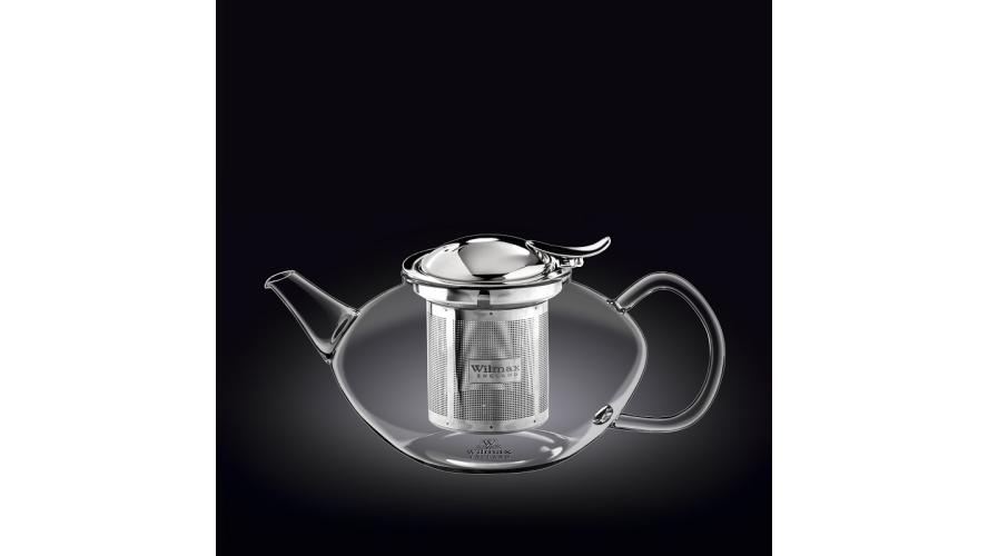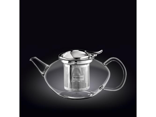 Чайник 1050 мл. заварочный стекл. с откидной крышкой и колбой нерж.Термостекло Wilmax /1/18/