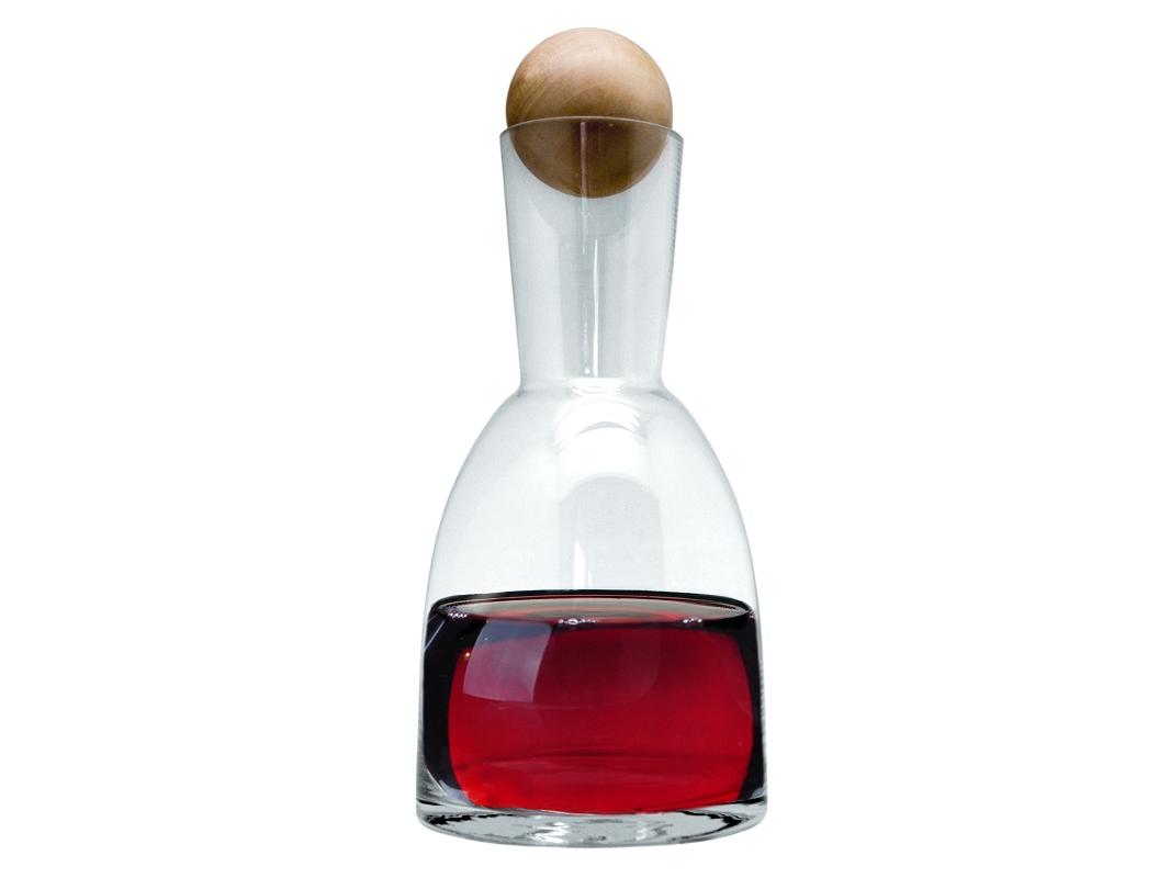 Декантер для вина объемом 1,2 л. с пробкой в виде деревянного шара.