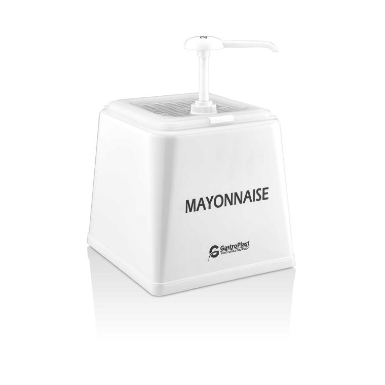 Диспенсер (емкость) для соуса 225*210 мм. h=225 мм. 2,5 л. с дозатором (25 мл), п/п, белая подставка пластик GP /1/