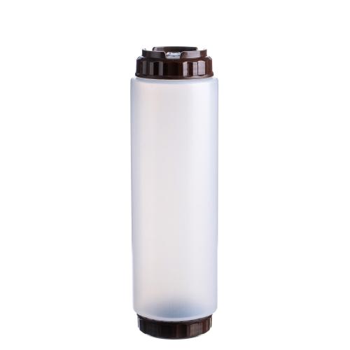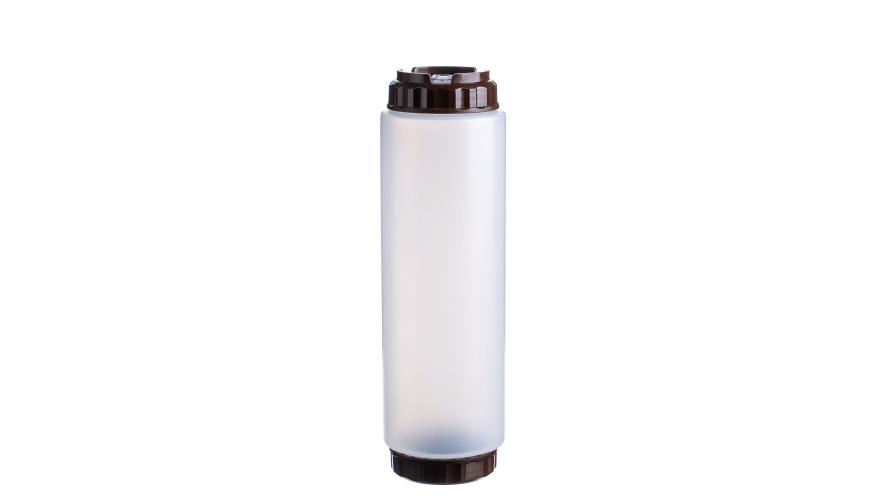 Емкость для соуса 1000 мл. d=75 мм. h=257 мм. c 2 крышками, с силик. носик. широкая прозрачная, крышки коричневые GP /1/96/