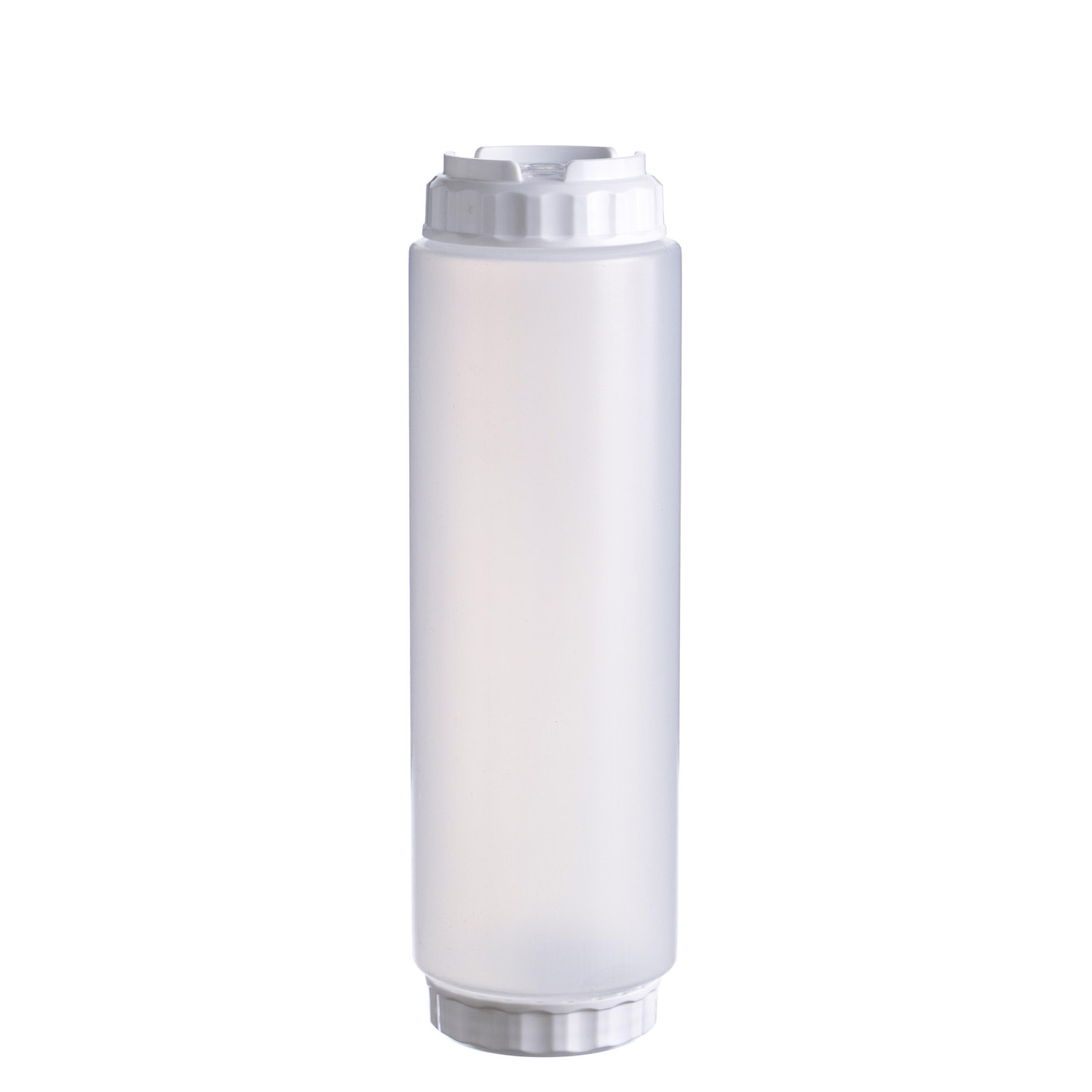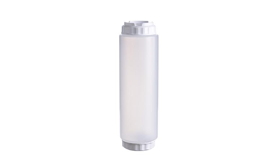string(968) "Емкость для соуса 1000 мл выполнена из прочного пищевого пластика и предназначена для профессионального использования в сегменте HoReCa. Конструкция имеет две откручивающиеся крышки и съемный силиконовый клапан, что обеспечивает удобство наполнения, использования и ухода, а также позволяет дозировать содержимое без подтеков и экономит место для хранения. Белый цвет служит маркировкой для майонеза и других белых соусов. Прозрачный корпус облегчает визуальный контроль содержимого. Подходит для мытья в посудомоечной машине.