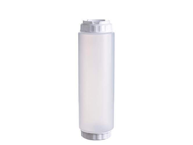 Емкость для соуса 1000 мл. d=75 мм. h=257 мм. c 2 крышками, с силик. носик. широкая прозрачная, крышки белые GP /1/96/ ВДОХНОВЕНИЕ