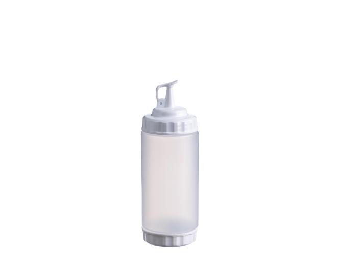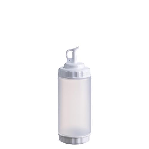 Емкость для соуса 500 мл выполнена из прочного пищевого пластика и предназначена для профессионального использования в сегменте HoReCa. Конструкция с двумя откручивающимися крышками обеспечивает удобство наполнения, использования и ухода. Дозирующий носик с крышкой-клапаном предотвращает проливы и защищает содержимое от загрязнений. Белый цвет служит маркировкой для майонеза и других белых соусов. Прозрачный корпус облегчает визуальный контроль содержимого. Подходит для мытья в посудомоечной машине.