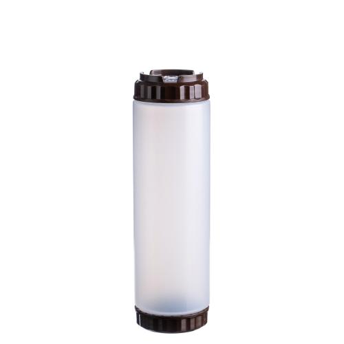 Емкость для соуса 750 мл. d=70 мм. h=237 мм. с 2 крышками, с силик. носик. широкая прозрачная, крышки коричневые GP /1/96/