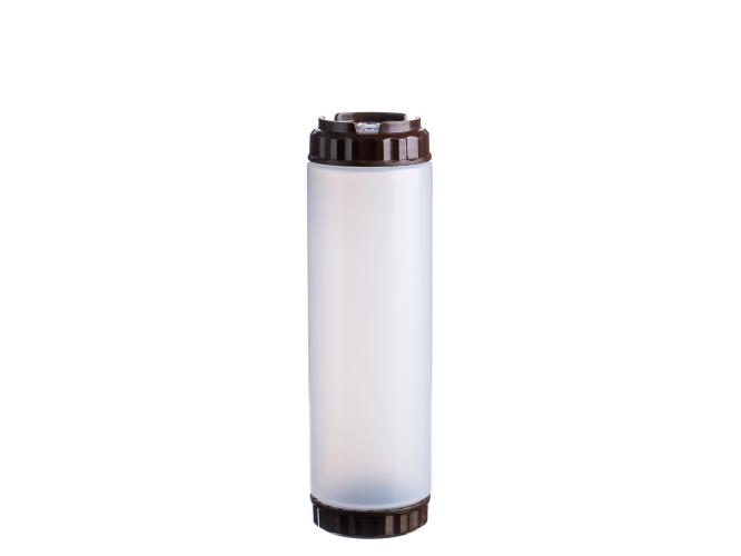 Емкость для соуса 750 мл выполнена из прочного пищевого пластика и предназначена для профессионального использования в сегменте HoReCa. Конструкция имеет две откручивающиеся крышки и съемный силиконовый клапан, что обеспечивает удобство наполнения, использования и ухода, а также позволяет дозировать содержимое без подтеков и экономит место для хранения. Коричневый цвет служит маркировкой для соуса барбекю, шоколада и топпингов. Прозрачный корпус облегчает визуальный контроль содержимого. Подходит для мытья в посудомоечной машине.
