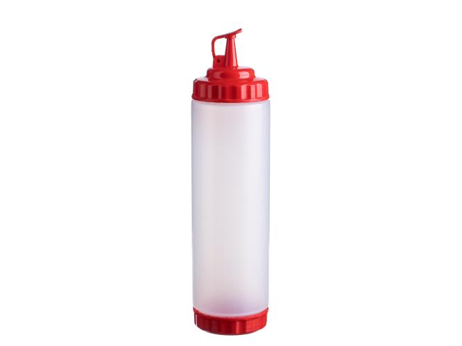 Емкость для соуса 750 мл выполнена из прочного пищевого пластика и предназначена для профессионального использования в сегменте HoReCa. Конструкция с двумя откручивающимися крышками обеспечивает удобство наполнения, использования и ухода. Дозирующий носик с крышкой-клапаном предотвращает проливы и защищает содержимое от загрязнений. Красный цвет служит маркировкой для кетчупа и острого соуса чили. Прозрачный корпус облегчает визуальный контроль содержимого. Подходит для мытья в посудомоечной машине.