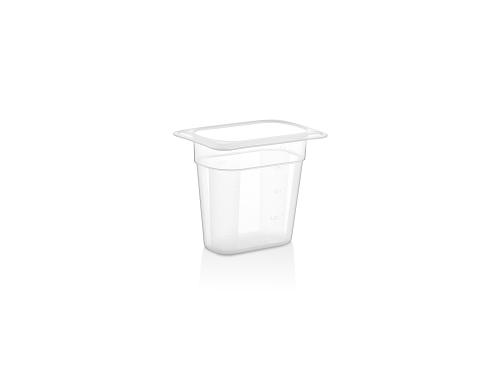 Гастроемкость GN 1/9 (176*108*150 мм) из полипропилена обладает устойчивостью к температурам от -40 до +100°c. Предназначена для хранения и транспортировки пищевых продуктов. Возможность штабелирования экономит место при хранении. Подходит для мытья в посудомоечной машине.