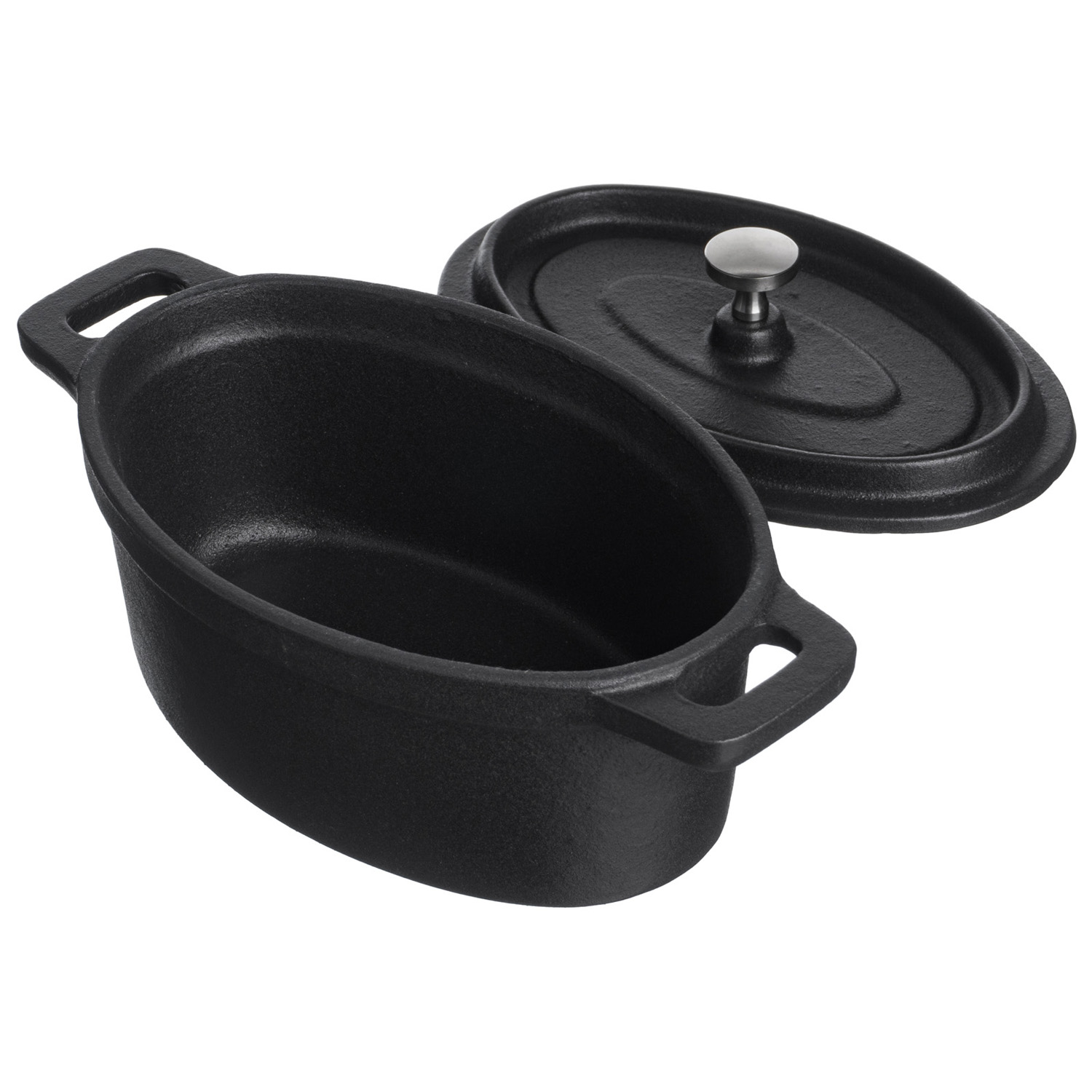 Кастрюля для запекания 450 мл. 150*100 мм. h=70 мм. с крышкой, черная, чугун /1/