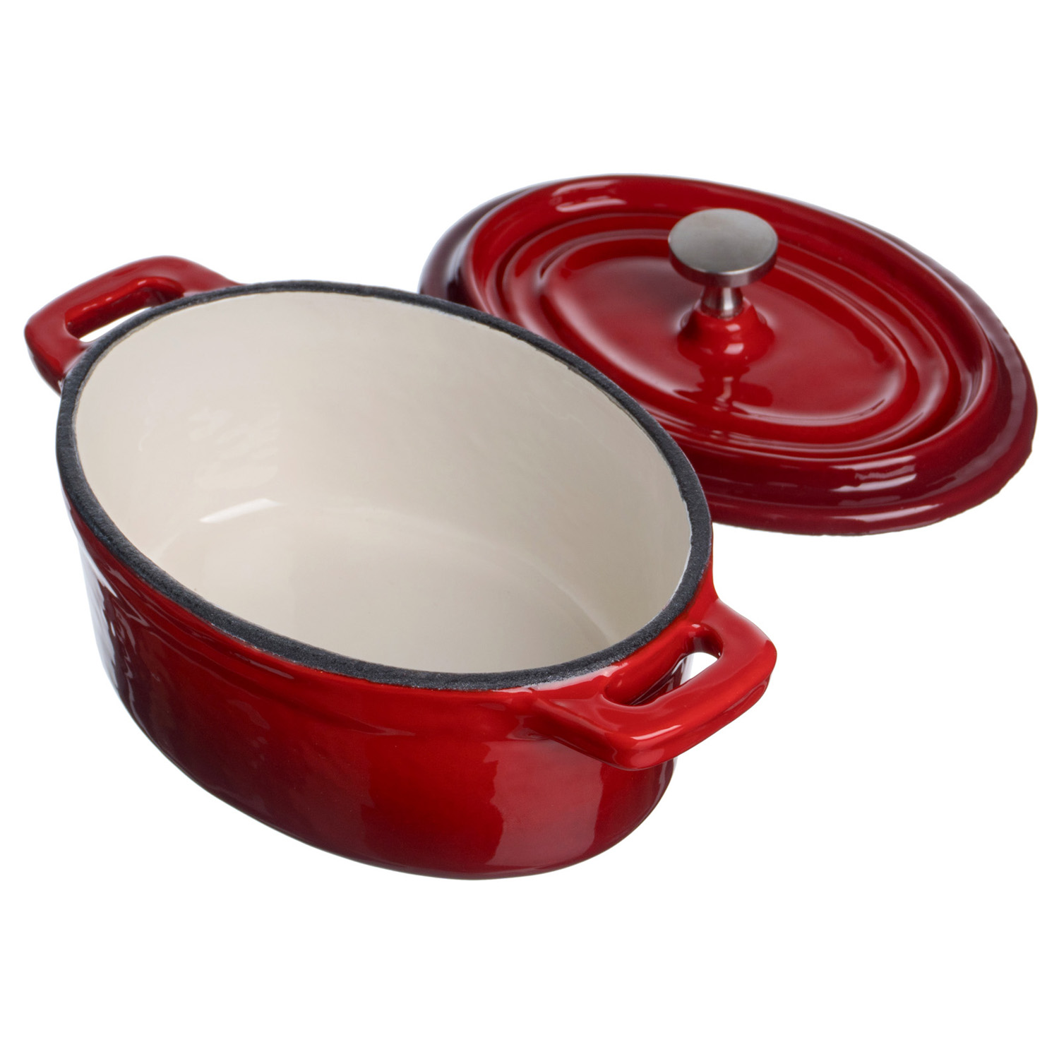 Кастрюля для запекания и подачи 250 мл. 125*90 мм. h=70 мм. с крышкой, красная, чугун /1/