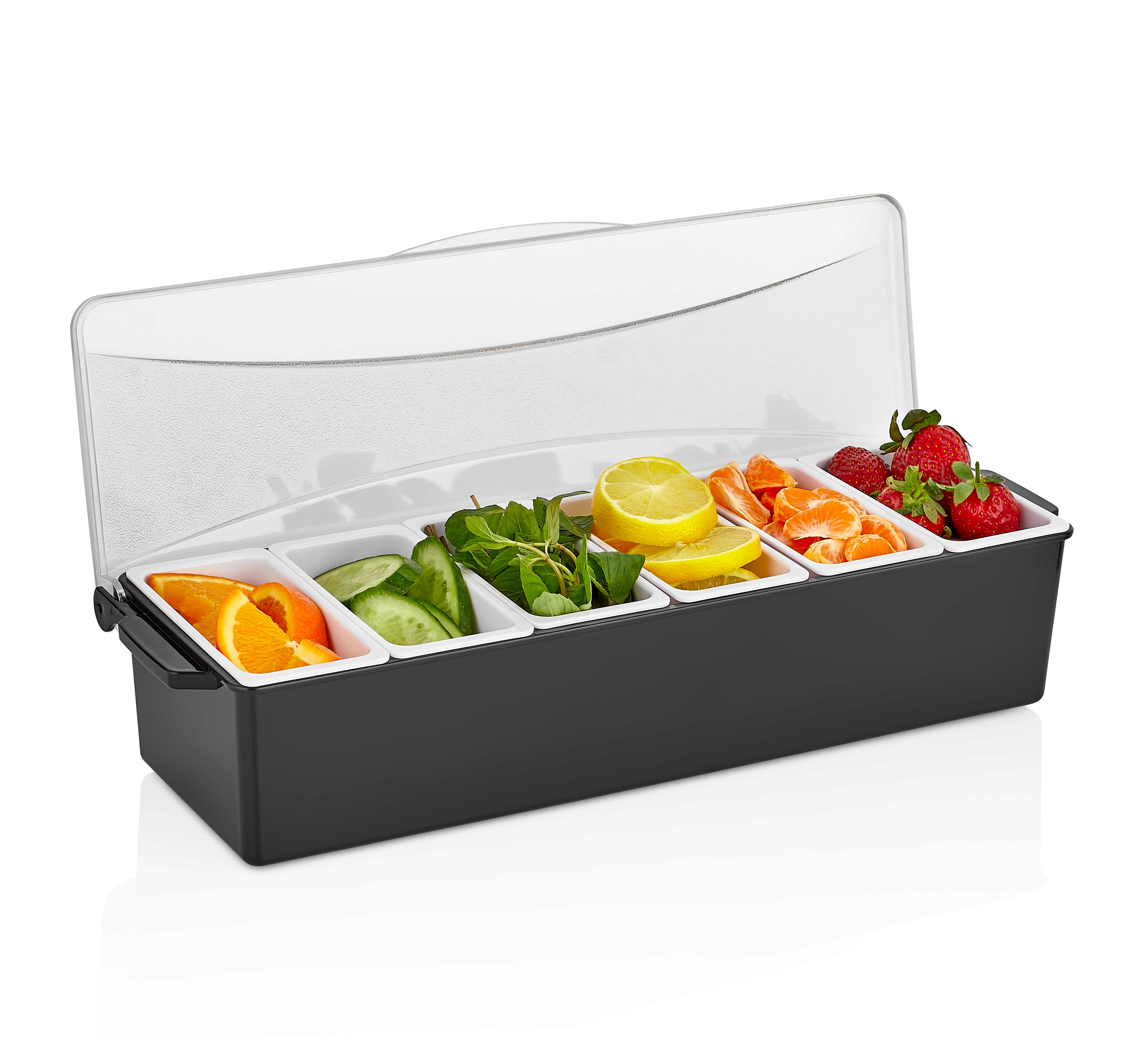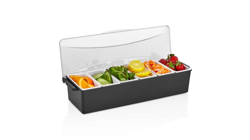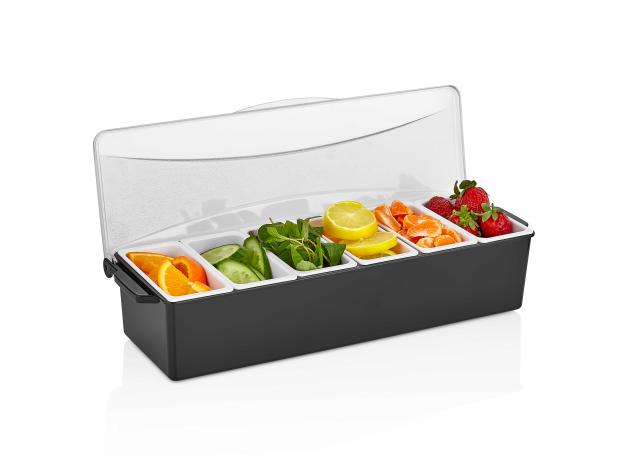 Контейнер для фруктов, специй и соусов 6 отд. по 0,4 л черный, пластик. GP /1/12/