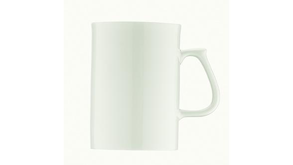 Кружка белого цвета со сливочным оттенком.