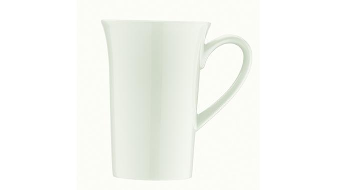 Кружка белого цвета со сливочным оттенком.
