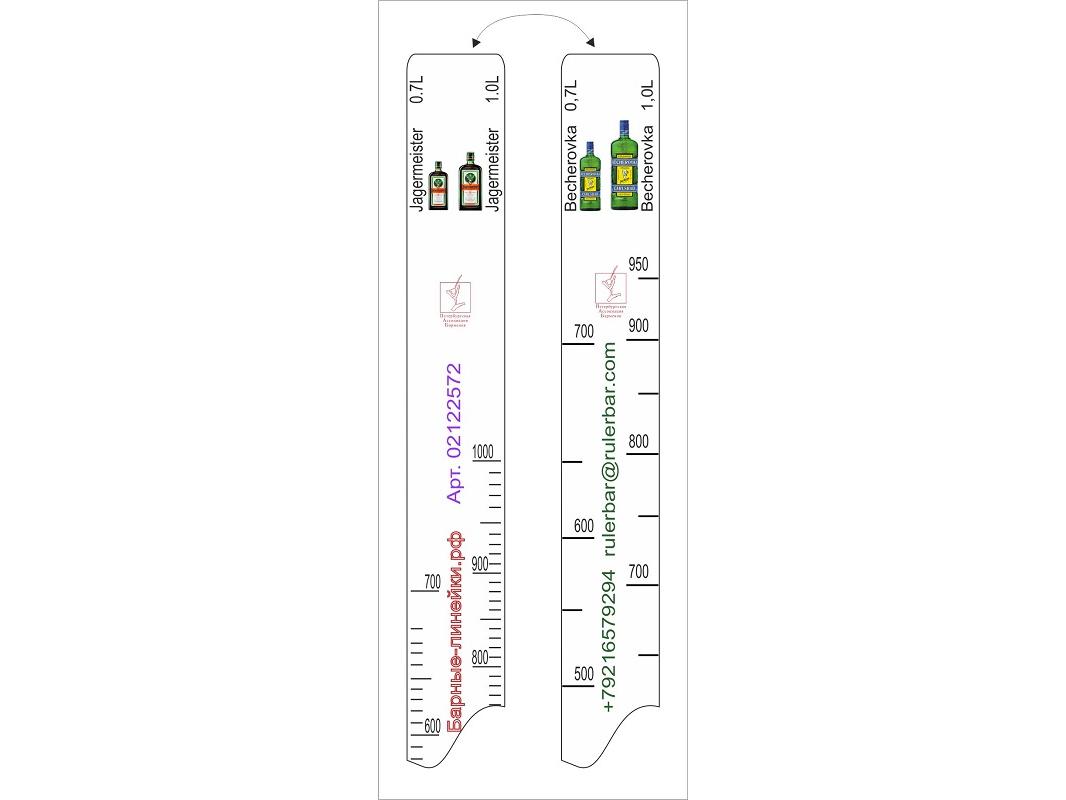 Линейка Becherovka (0.7 л./1 л.)/ Jegermeister (0.7 л./1 л.) L=28 см. В=2 см. /1/