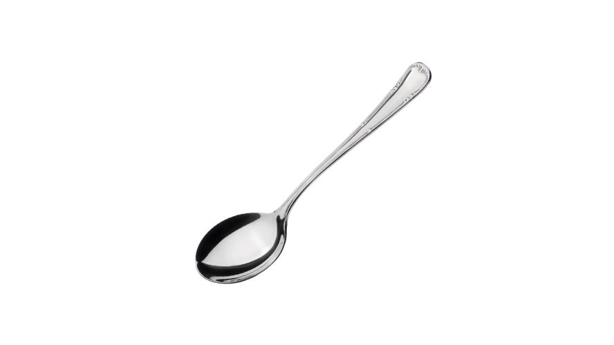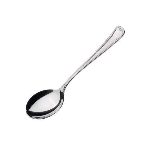 Ложка для бульона Abert Henry VIII – профессиональный столовый прибор, оформленный в классическом стиле с элегантным узором, проходящим по кромке ручки.