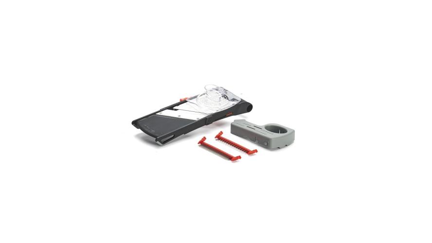 Мандолина (овощерезка) 28*10 см. с 3-мя насадками и толкателем, нерж и пластик De Buyer /1/