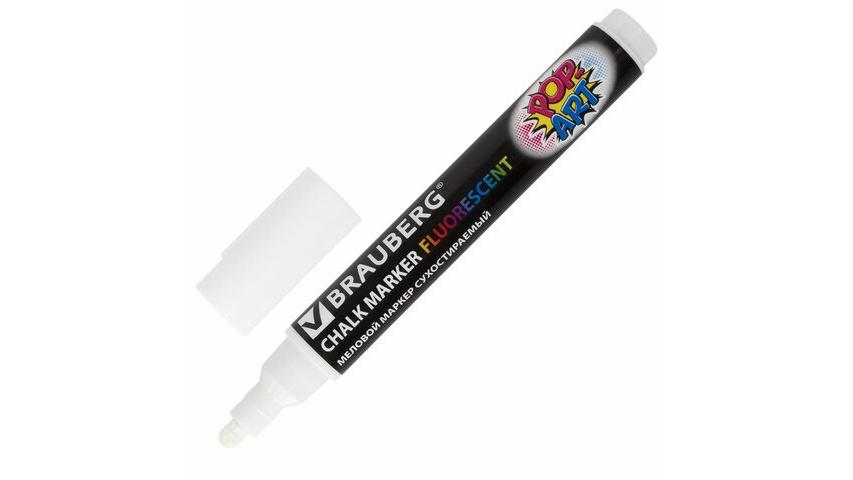 Меловой маркер Brauberg белый с толщиной линии до 5 мм.