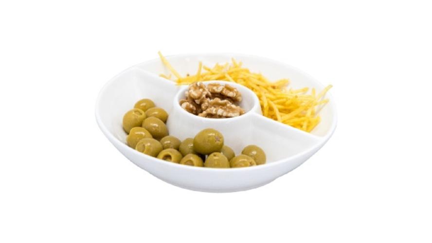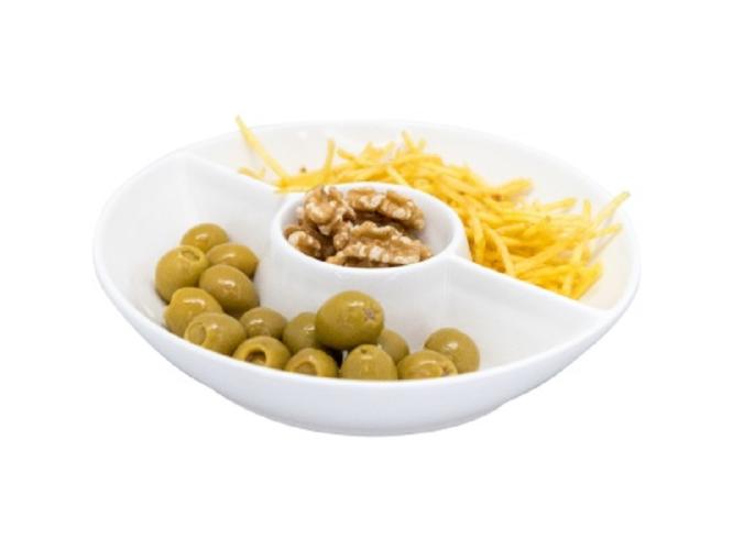 Фарфоровая тройная круглая менажница — идеальный способ подать ваши закуски стильно и изысканно. Каждая из трех секций предназначена для разделения закусок, что позволяет подавать различные варианты без смешивания вкусов. Тонкий фарфор и блеск эмали придают нотку элегантности, которая улучшает презентацию любого блюда: от оливок и орехов до сладостей и шоколада. Эта тарелка идеально подходит не только для мероприятий и общественных мероприятий, но и для повседневного использования, добавляя нотку роскоши к вашим обычным блюдам. В этом дизайне удобство сочетается с красотой, поскольку его легко чистить и обслуживать, что позволяет вам сосредоточиться на наслаждении компанией и едой, а не на уборке после нее.