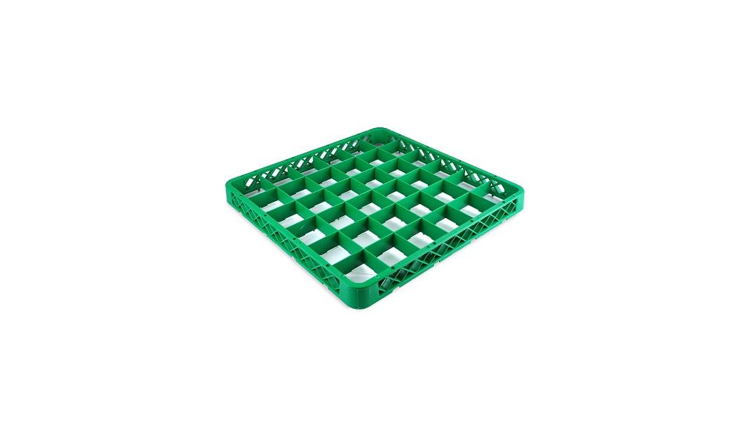 Надстройка для кассеты 36 секций, зелёная (полипропилен) используется как дополнительный элемент для установки на основную кассету с целью увеличения её высоты. Кассеты применяются для мытья одноразмерной посуды (фужеров, бокалов и др.), кухонного инвентаря, столовых приборов на профессиональной кухне предприятий общественного питания. Кассеты имеют стандартные размеры, что позволяет использовать их во всех существующих профессиональных посудомоечных машинах: фронтального, купольного и туннельного типа. Максимальный диаметр посуды для размещения в ячейках кассеты 74 мм. Помимо мойки, кассеты используются для хранения и транспортировки посуды из моечной зоны в зону раздачи, что позволяет избежать её загрязнения и значительно уменьшить бой посуды.