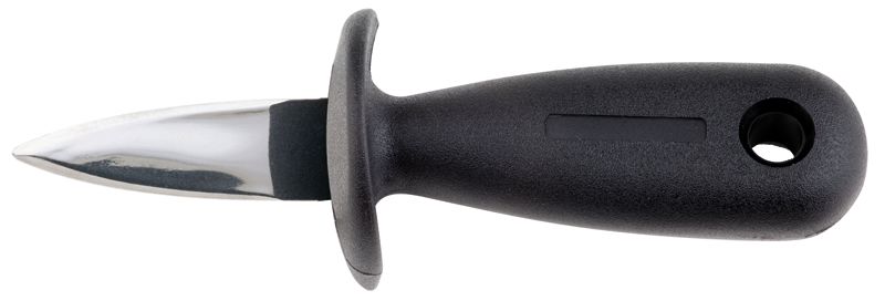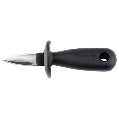 Рукоять ножа с защитой пальцев выполнена из ударопрочного пластика с нескользящей поверхностью и широкой задней частью, что позволяет крепко и безопасно держать нож при открывании моллюска.
