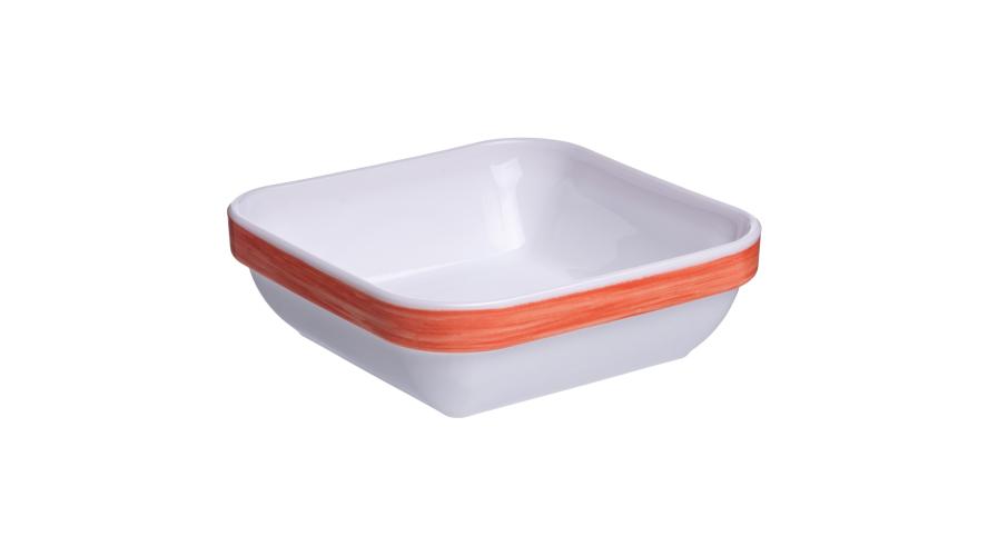 Салатник квадр. 110*110 мм. 200 мл. h=37 мм. оранж. край штабелир. Браш /1/6/24/ АКЦИЯ