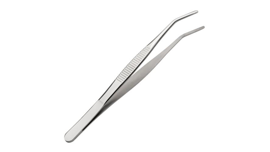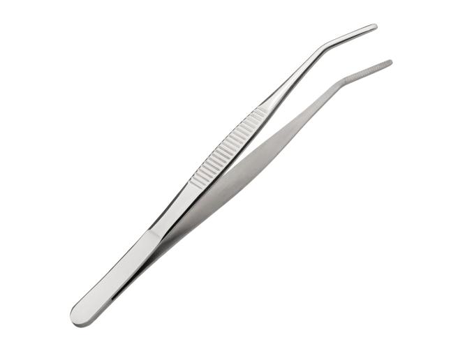 Щипцы (пинцет) 16 см. прямые, изогнутый кончик, нерж. MGsteel /1/100/
