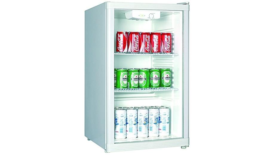 Холодильный шкаф витринного типа, 1 распашная стеклянная дверца, подсветка, 2 полки-решетки, цвет белый.