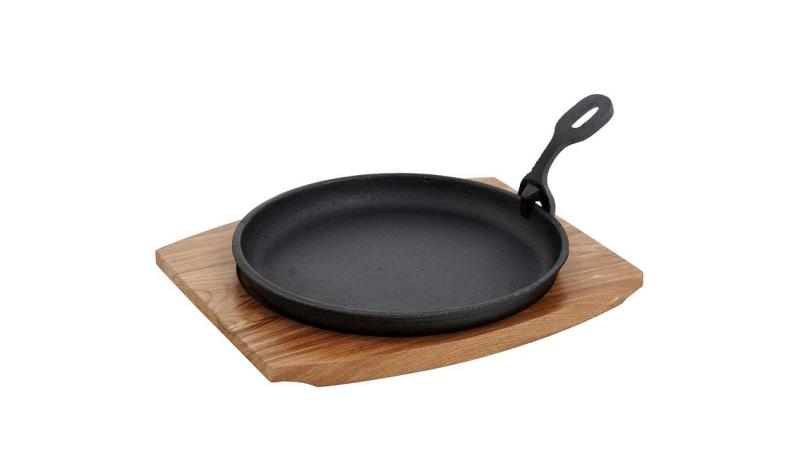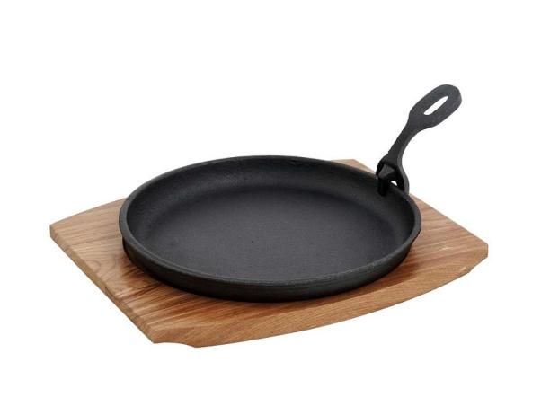 Сковорода d=21 см. h=4 см. 1,3 л. чугун. съемная ручка на дерев. подставке /1/12/