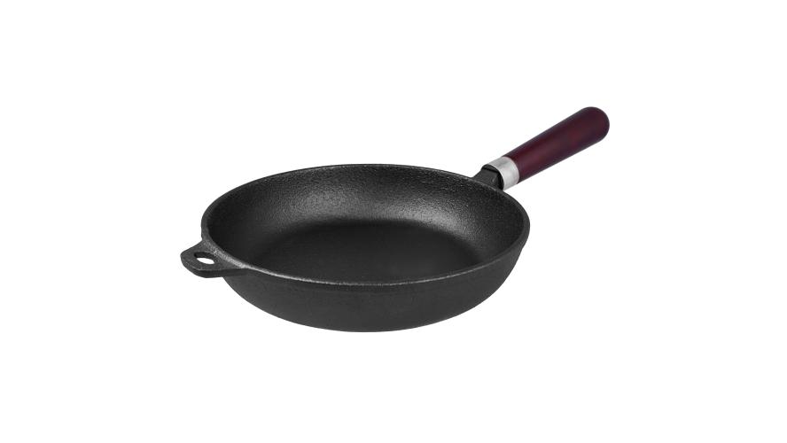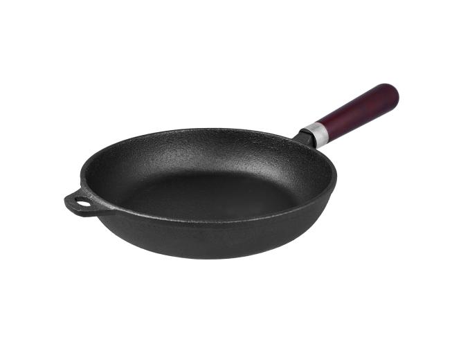 Сковорода d=22 см. h=4,8 см. 1,2 л. чугун. глубокая с дерев. ручкой /1/6/
