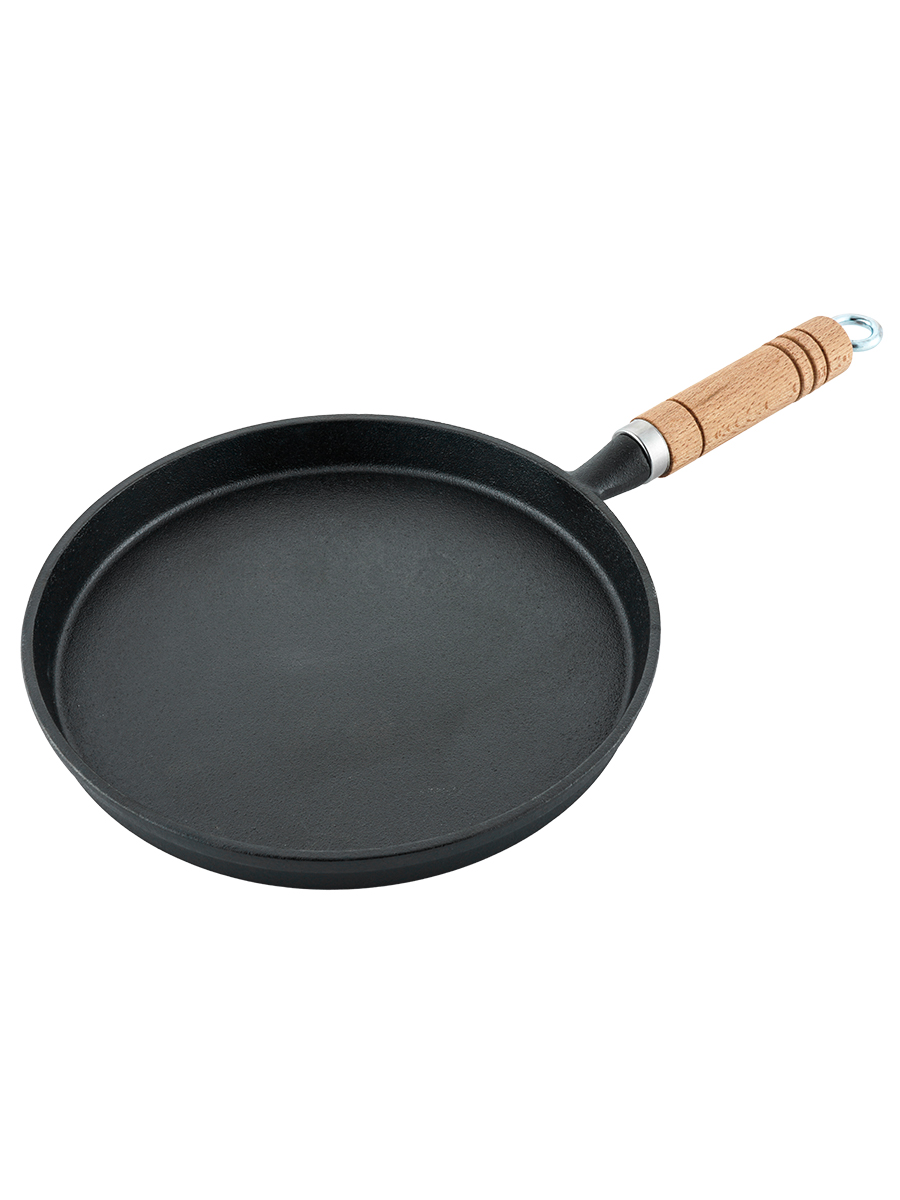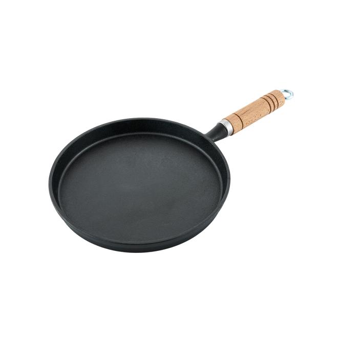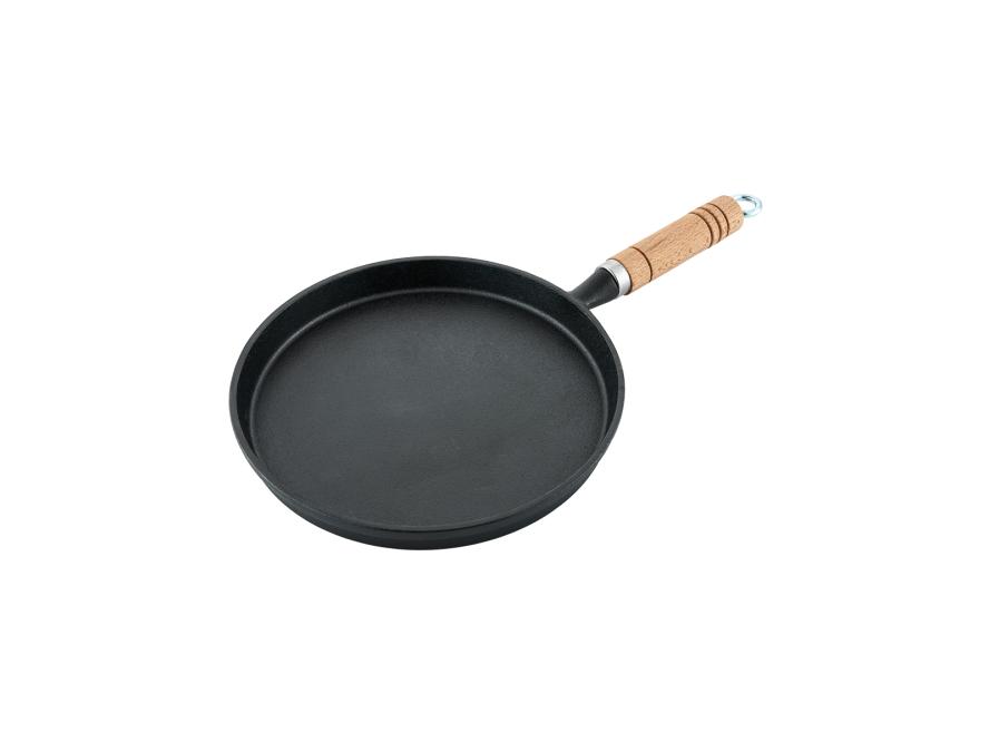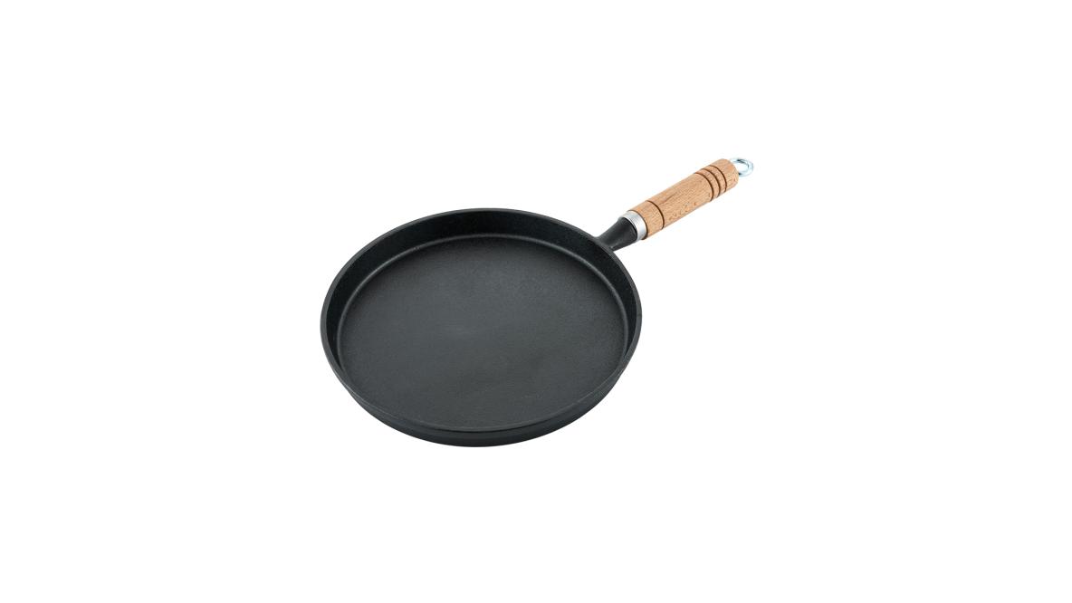 Сковорода для блинов d=22 см. h=2 см. 0,7 л. чугун. с дерев. ручкой /1/6/