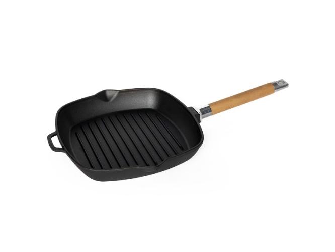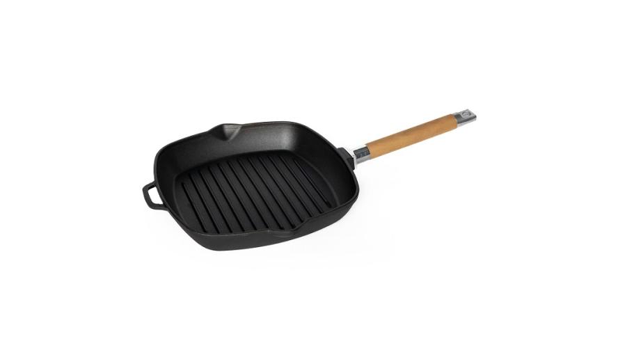 Сковорода-гриль 28*28 см. h=4,5 см. чугун. рифлен. со съемн дерев. ручкой /1/8/
