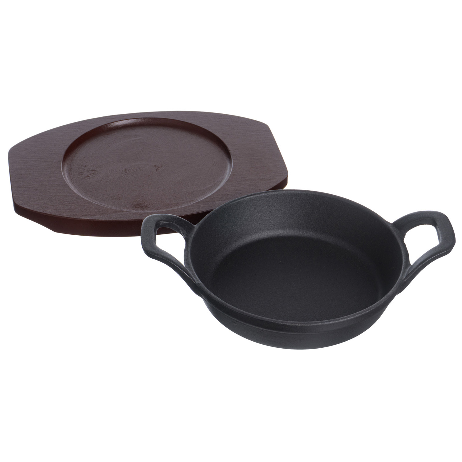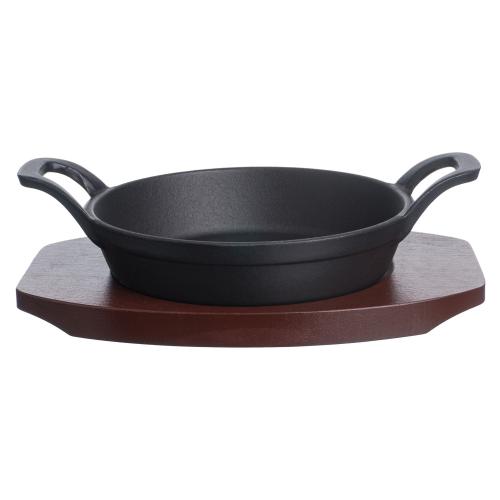 Сковорода порц. d=16 см. h=4,7 см. 0,5 л. чугун. с 2 ручками на дерев. подставке /1/