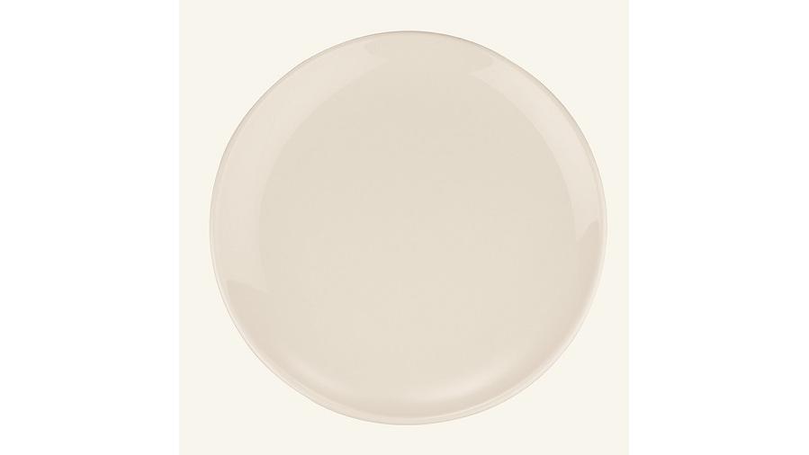 Тарелка белого цвета со сливочным оттенком.