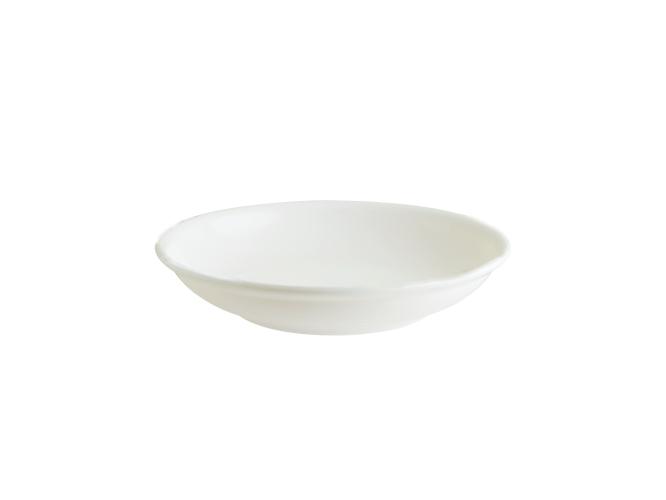 Тарелка белого цвета со сливочным оттенком.