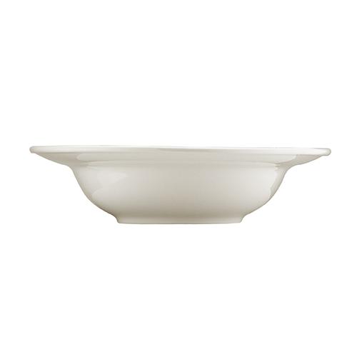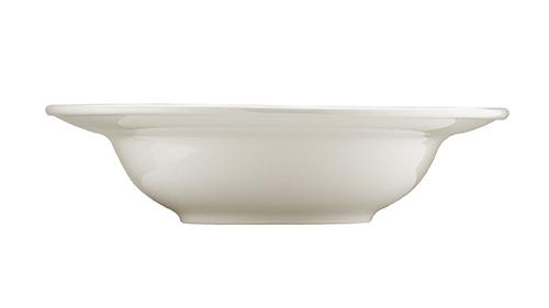 Тарелка белого цвета со сливочным оттенком.