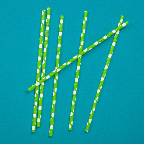Трубочки кокт. 0,6*23 см. 25 шт/уп. бумажные, с изгибом, зеленые с белыми шарами /1/40/ АКЦИЯ