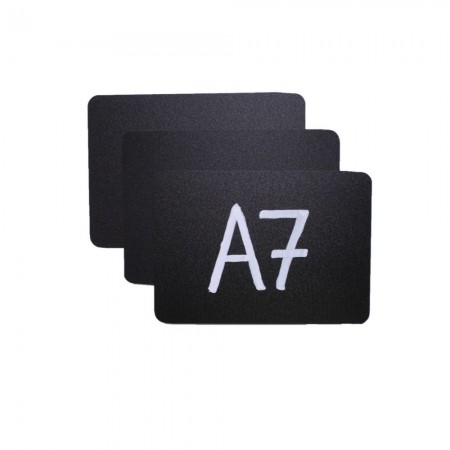 Меловой ценник с двусторонней шероховатостью черный формат А7 изготовлен из полипропилена 0.5 мм. (скругленные углы)