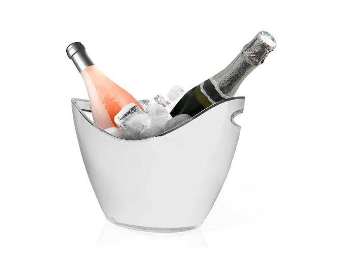 Для темперирования вина лучше всего поместить бутылку в ведерко со льдом, с водой и льдом на несколько минут. Это не только наименее вредно для вина, но и самый быстрый способ его охладить. Каждое вино имеет свой идеальный температурный диапазон и достигается это постепенно. Помимо быстрого охлаждения, это лучший способ сохранить свежесть. Ведро для льда на 2 бутылки устойчиво к ударам и перепадам температуры. Оно имеет два отверстия по бокам для удобства перемещения и позволяет наклонять бутылки в обе стороны. Сохраняет прохладу в течение нескольких часов.