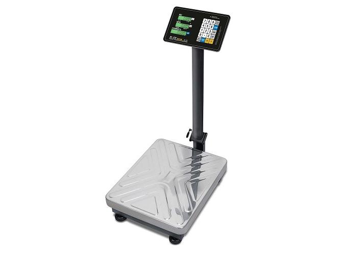 Результаты выводятся на LCD-дисплей. Он установлен на выносной стойке. Дисплей закреплен на металлической основе. На экране выводятся 16 разрядов индикации. Он показывает массу товара, стоимость 1 кг, общую стоимость покупки, размер сдачи. Размер символов: 8*14 мм.