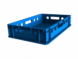 Ящик 600*400*120 мм. для мяса Е1 прямой сплошной, синий (крышка 65079) /1/80/