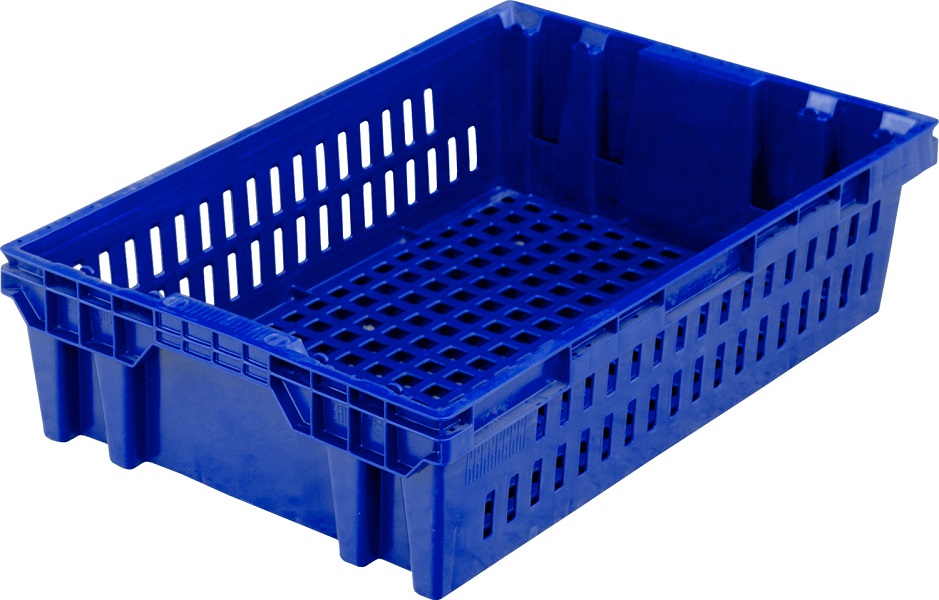 Ящик 600*400*152 мм. для мяса конусный перфорир., синий /1/40/160/