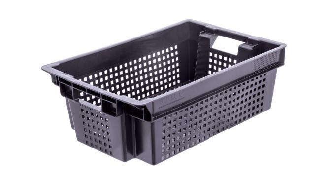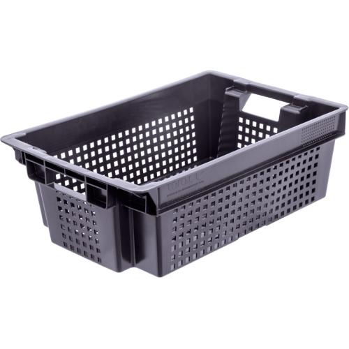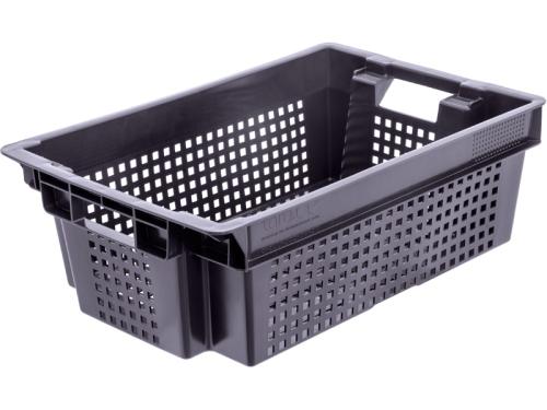 Ящик 600*400*200 мм. для овощей конусный перфорир. дно перфоир., черный (крышка 73263,76402) /1/140/
